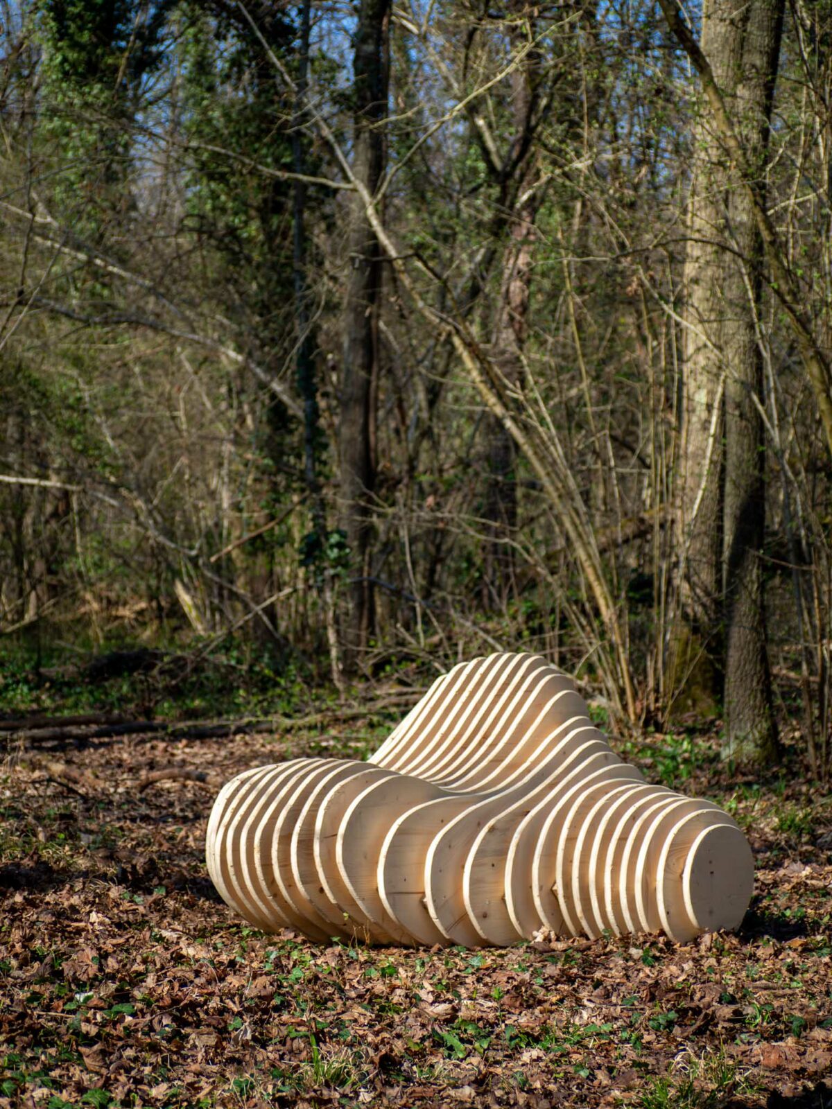 Le Galet est un projet d’assises multiples, conçu pour les familles. Chaque emplacement d’assise offre une perspective unique sur la forêt, invitant à l’exploration sous différents angles. Allongé, les yeux plongés dans la canopée, assis, le regard porté vers l’horizon à travers les arbres, ou encore, pour les plus curieux et audacieux, allongé sur le ventre pour observer la vie frénétique des insectes.